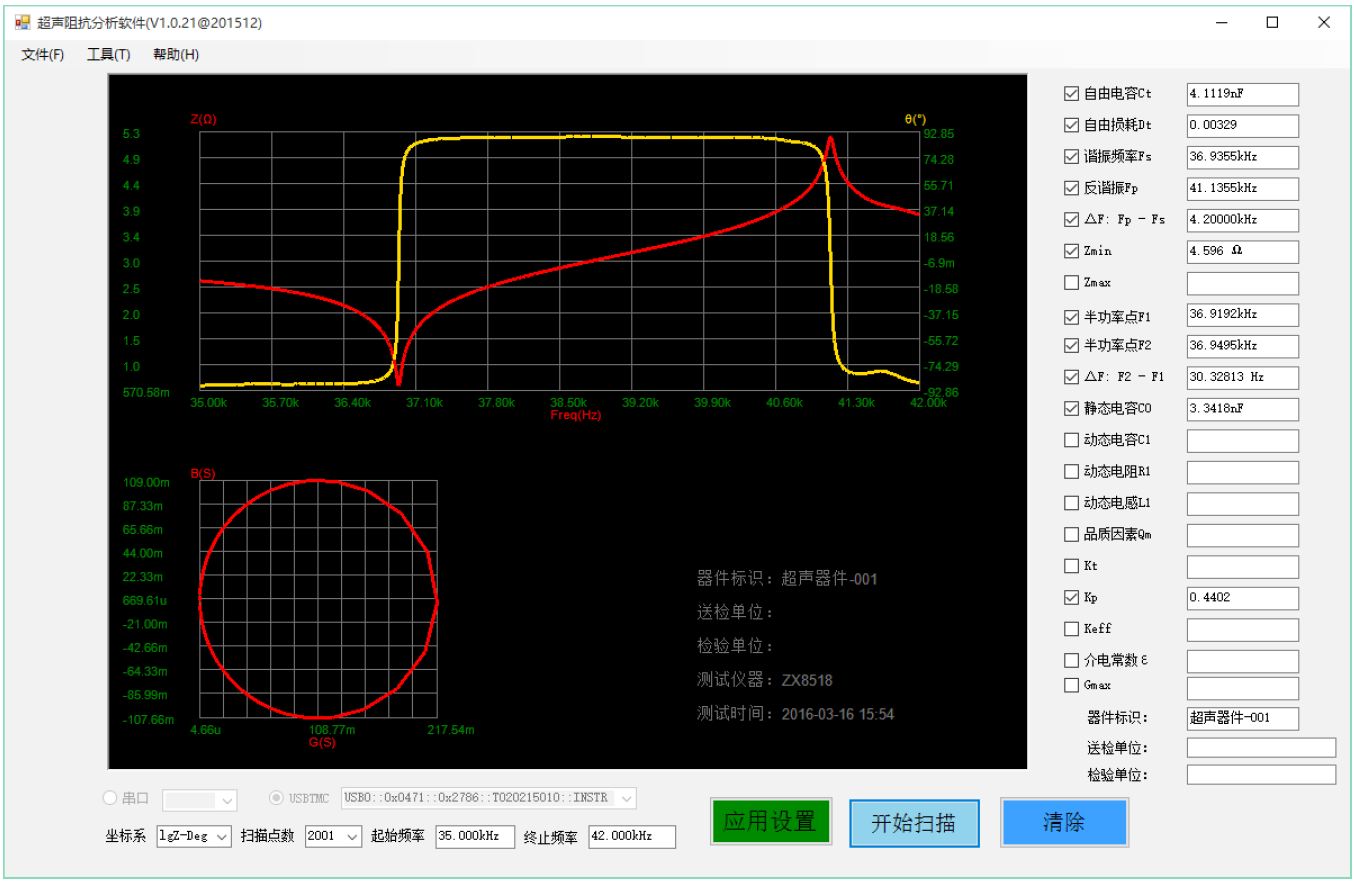 ZX70A/ZX80A系列超聲阻抗分析儀在儀器上就實現(xiàn)掃描圖形,還可以把儀器上屏幕顯示圖形和測試數(shù)據(jù)直接拷貝到U盤。同時儀器自帶電腦軟件界面,標配版無需另行購買。